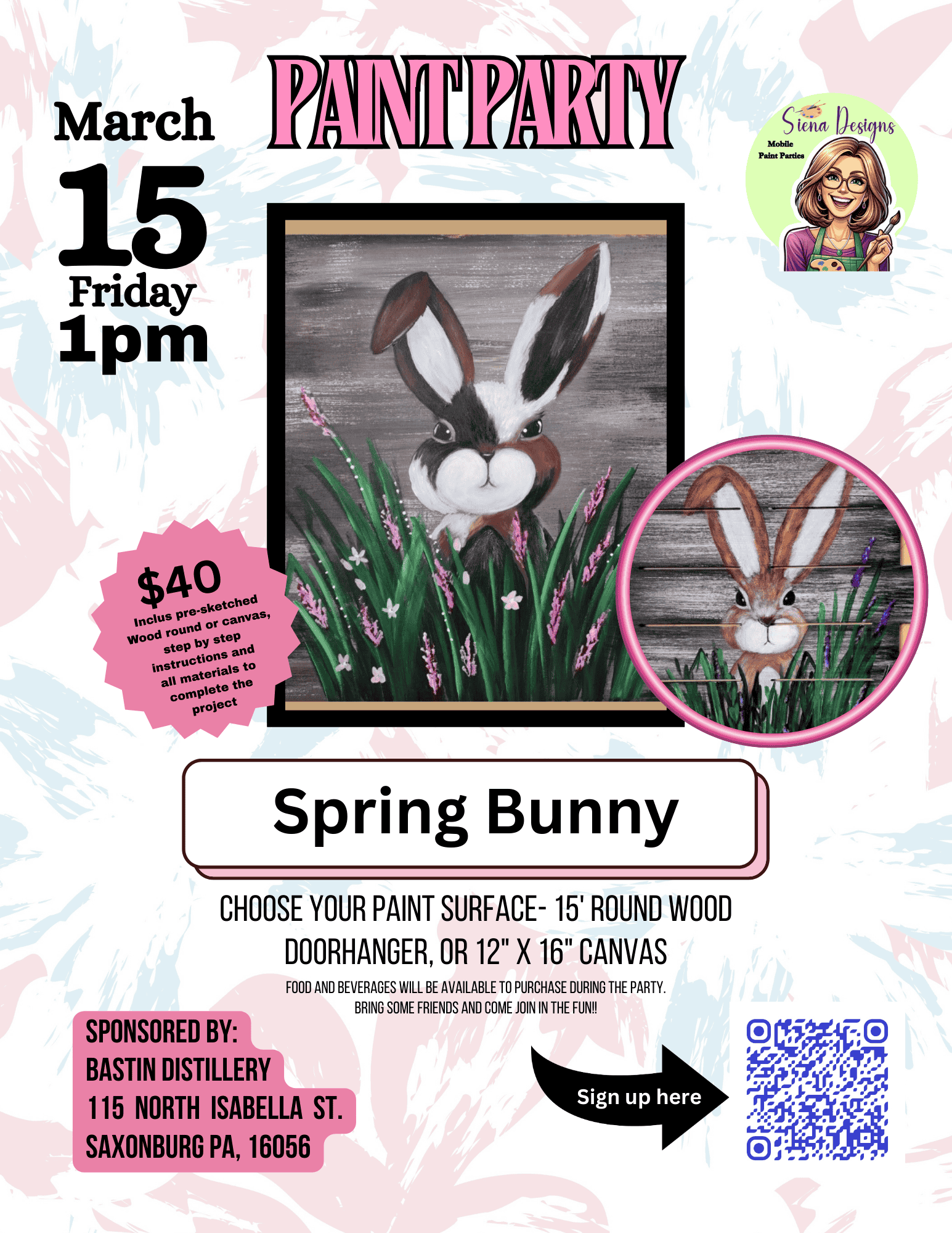 Join us on March 15th for a creative break. We are painting a wonderful Bunny doorhanger or canvas painting.